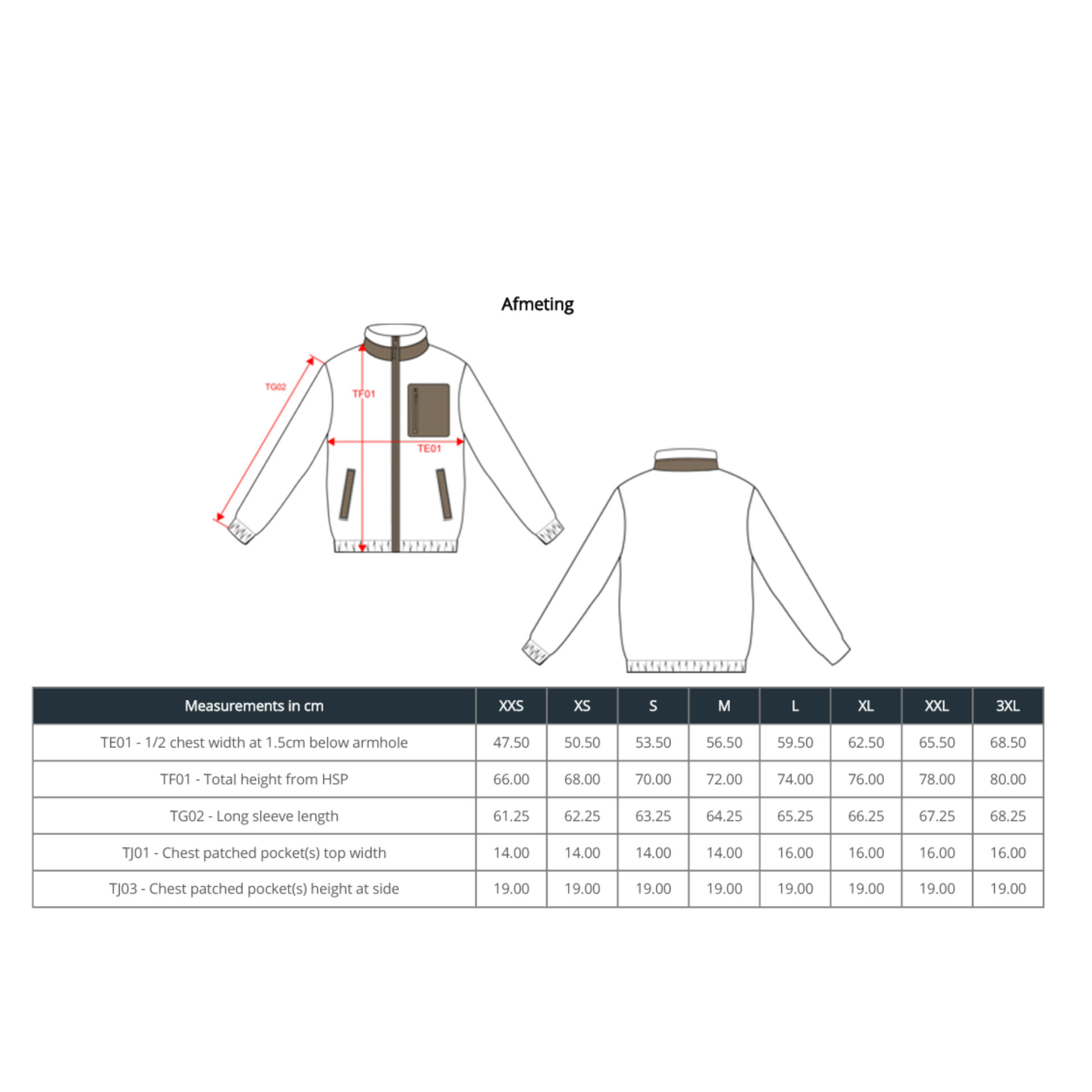 - Rits van gerecycled plastic in het midden vooraan en aan de borstzak, met trekker in de hoofdstof en een metalen schuiver.